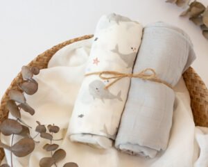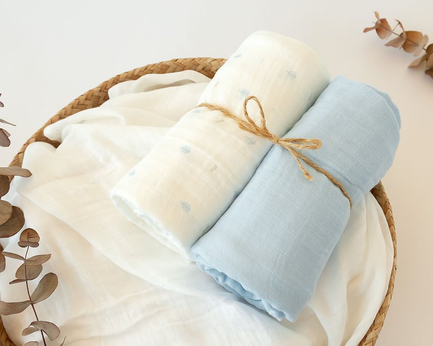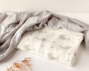 Ekologiškas muslino audinio vystyklas 120×120 cm iš bambuko ir medvilnės