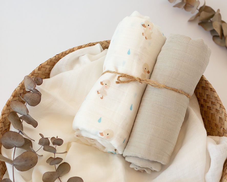 Tvarūs pasirinkimai prasideda nuo kasdien naudojamų daiktų. Todėl siūlome muslino audinio vystyklus, pagamintus iš 70 % bambuko viskozės ir 30 % medvilnės – tai idealus derinys, apjungiantis natūralių pluoštų privalumus ir užtikrinantis aukščiausią komfortą kūdikiui.