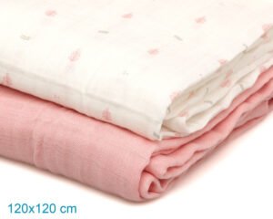 • Svoris: 140 g/vnt – storesni ir kokybiškesni nei įprasti muslino vystyklai.