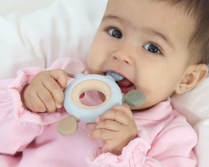 Mūsų kramtukai pagaminti iš maistinės kokybės silikono ir natūralios buko medienos – saugūs, patvarūs ir malonūs liesti.