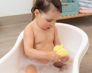 Padovanokite mažyliui dar daugiau džiaugsmo maudynių metu su šia miela silikonine antimi.