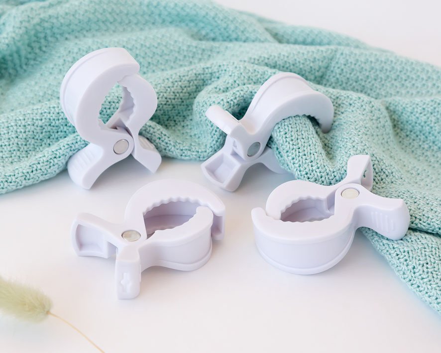 Šie universalūs spaustukai padės lengvai ir saugiai pritvirtinti vystyklą, užklotą, pledą ar žaislą prie vežimėlio, lovytės ar automobilinės kėdutės. Tai nepakeičiamas aksesuaras tiek kasdien, tiek kelionėse!